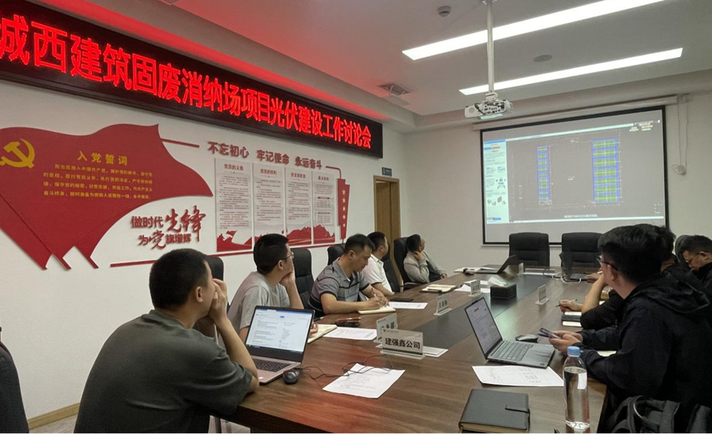 4月24日,公司召開(kāi)綿陽(yáng)城西建筑固廢消納場(chǎng)項(xiàng)目光伏建設(shè)工作討論會(huì)。(素材來(lái)源:業(yè)務(wù)部 陳星)