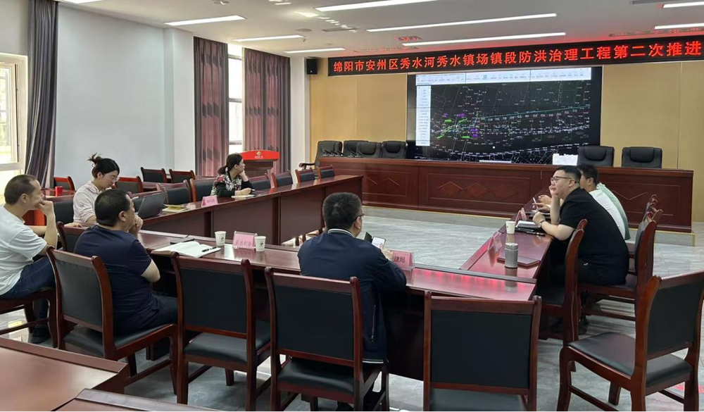 4月23日,公司組織召開(kāi)綿陽(yáng)市安州區(qū)秀水河秀水鎮(zhèn)場(chǎng)鎮(zhèn)段防洪治理工程第二次推進(jìn)會(huì)。(素材來(lái)源:工程項(xiàng)目部 陳潔)